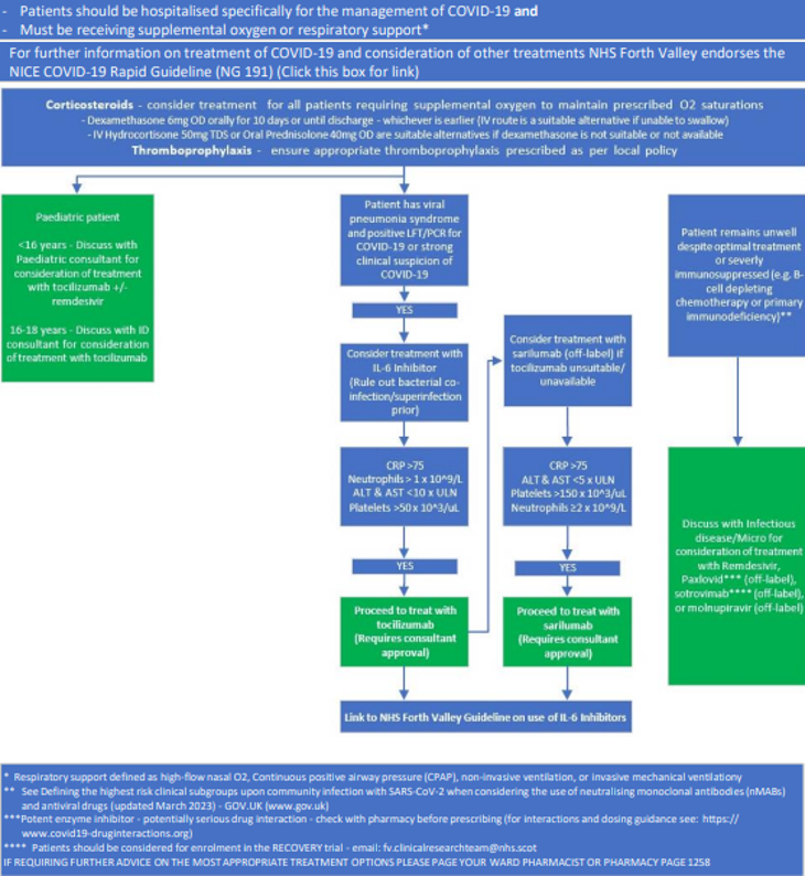 Treatment algorithms for patients testing positive for COVID-19 or with strong clinical suspicion of COVID-19