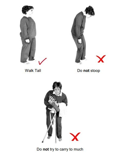 • Always use your walking aid and avoid using your furniture to support yourself.