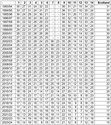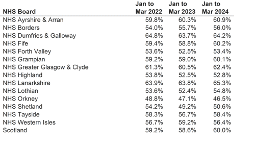 Proportion of adults prescribed a benzodiazepine or z-drug (B-Z) for 8 weeks or less, or longer than 8 weeks, by NHS board, Scotland 2023/24