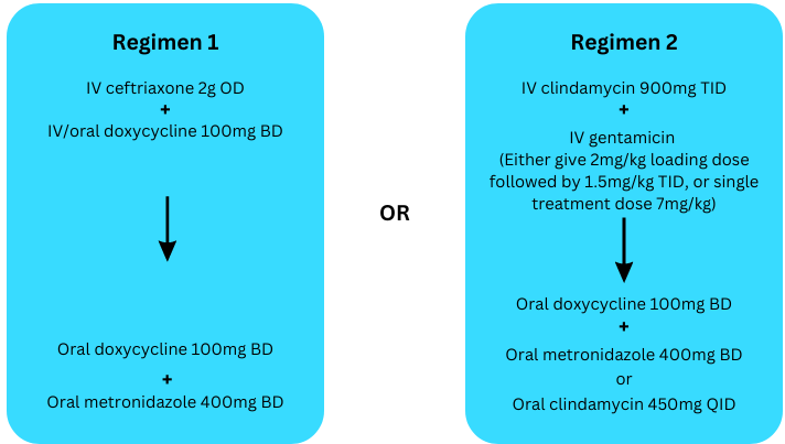 Adapted from BASHH UK national guideline for the management of PID (June 2011) and current practice in Sexual Health Department, Nithbank, Dumfries.