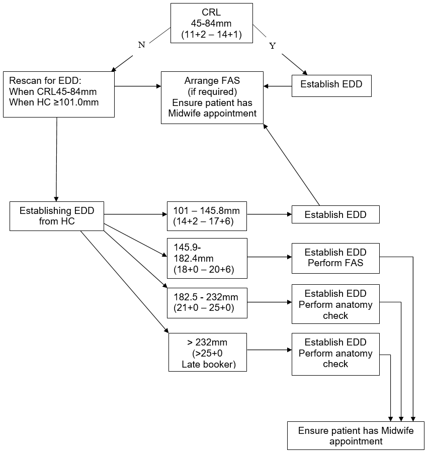 EDD should be calculated from the first scan ≥ 11+ 2 weeks gestational age (≥ 45mm).