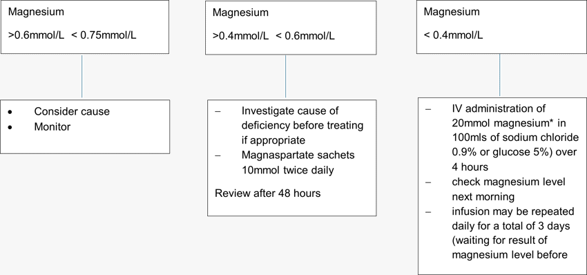 • If hypomagnesaemia occurs with hypocalcaemia and hypokalaemia, magnesium replacement should be via IV route.