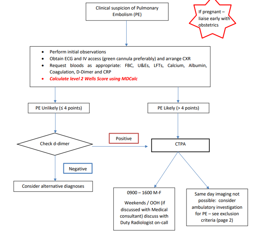 Use of MDCalc recommended: this protocol required calculation of Level 2 Wells score, and s-PESI score.