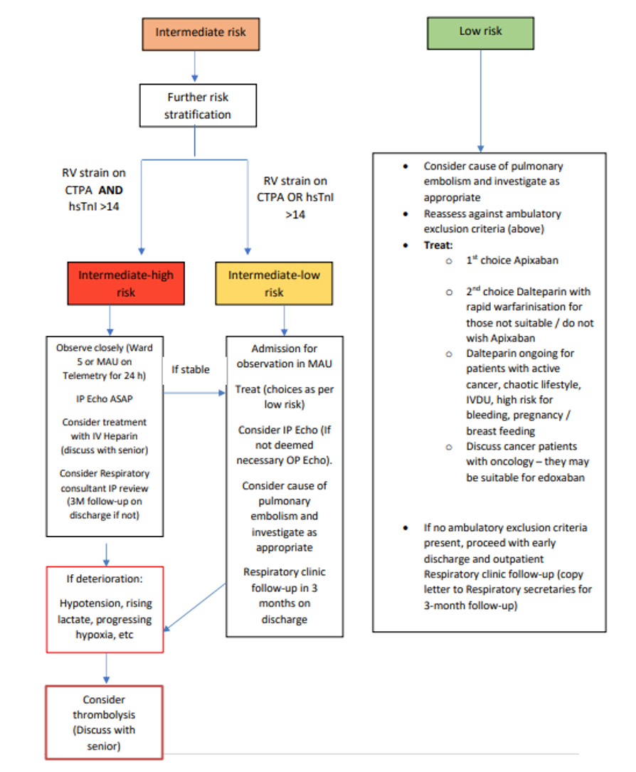 • Anticoagulation in first unprovoked PE should continue until review in respiratory clinic.