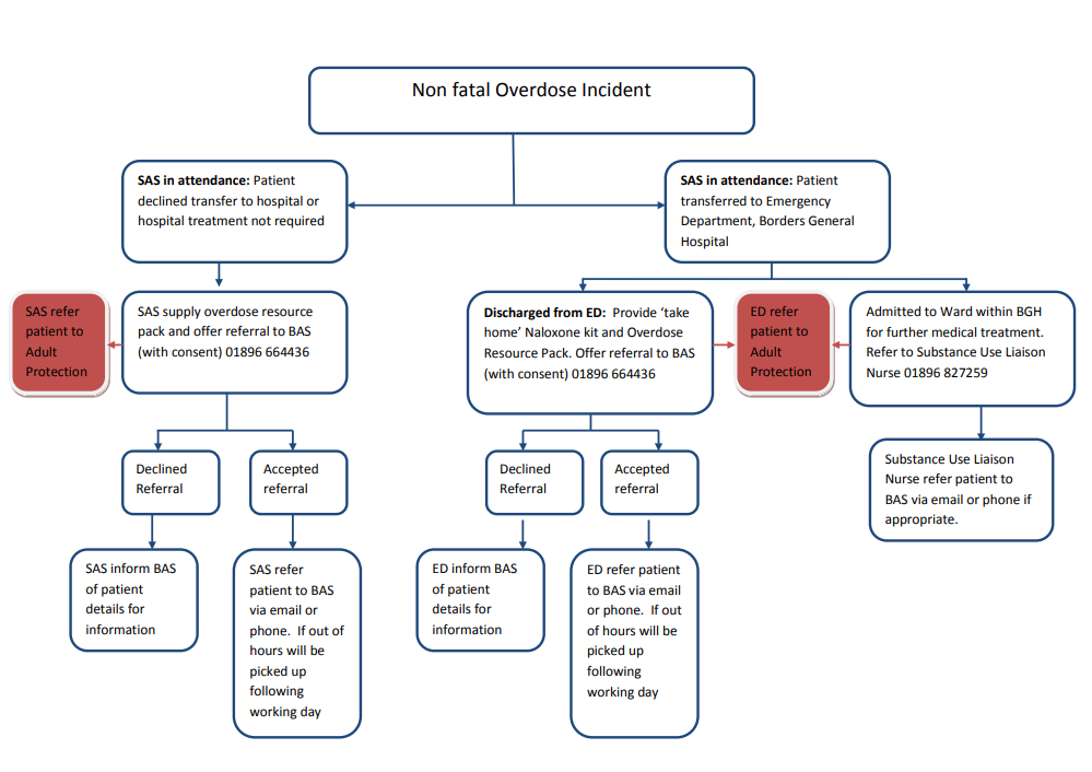The guidance is aimed at Hospital and Ambulance staff and the interface with the NHS Borders Addiction Service (BAS), Addaction and the Substance misuse Liaison service.