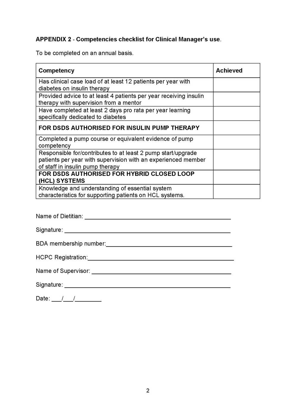 Appendix 2 - Competencies checklist for Clinical Manager use