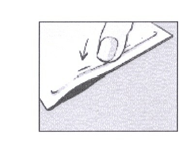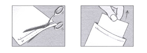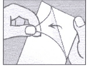 tear open or cut the sachet along the dotted line, when using scissors, be careful not to damage the plasters take out one or more plasters depending on the size of the painful area on your skin