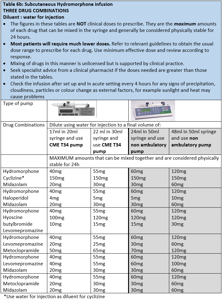 Subcutaneous Hydromorphone Infusion (3 Drug Combinations)