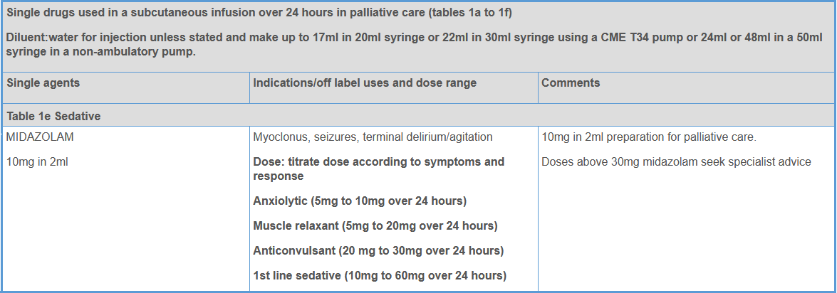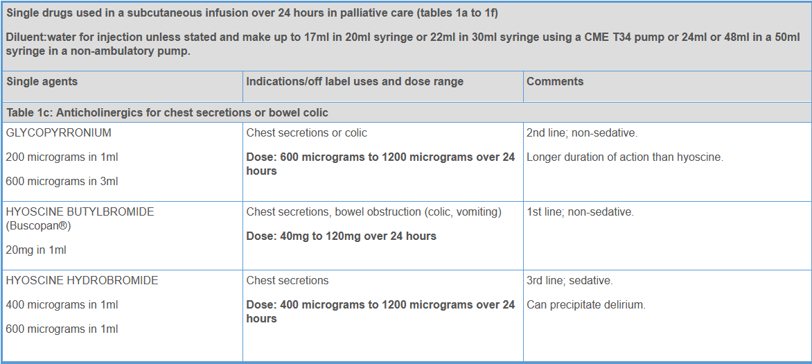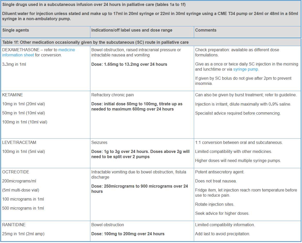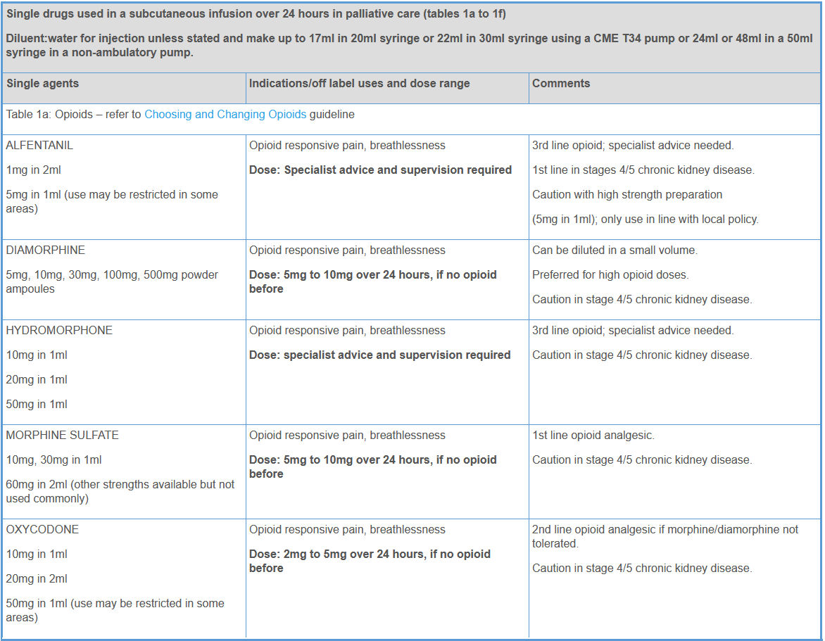 Subcutaneous Diamorphine Infusion (3 Drug Combinations)