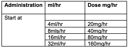 Dosage as clinically appropriate [e.g. 1.5-3.0mls]