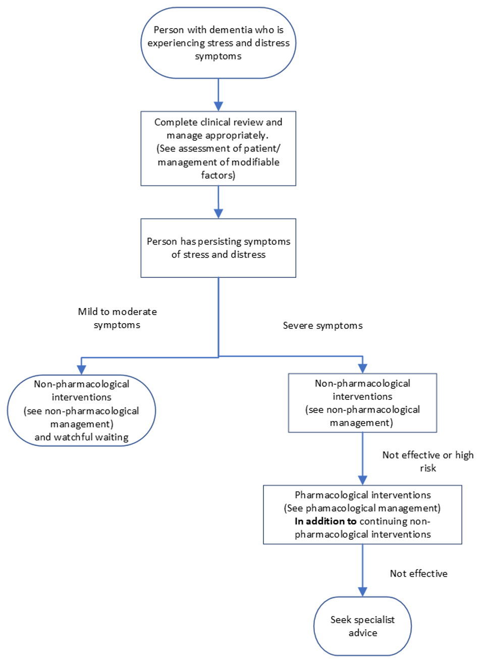Symptoms of stress and distress may otherwise be known as ‘behavioural and psychological symptoms of dementia (BPSD)’ or ‘non-cognitive symptoms of dementia’.