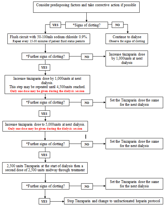 Step 4 – change tinzaparin dose to 2,500 units at the start of dialysis then repeated midway through the treatment.
