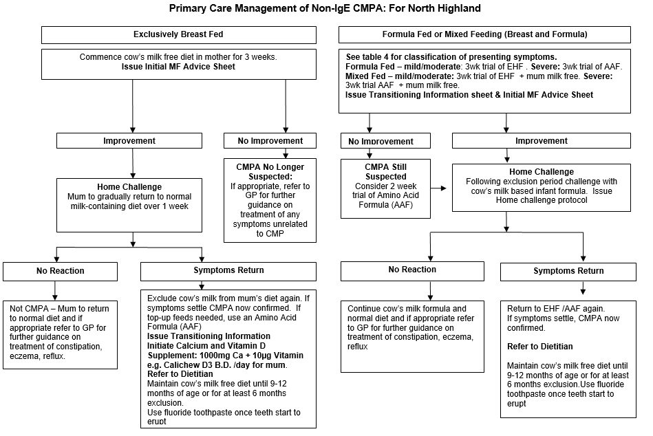 Goat or other mammalian milk formulas are not suitable for the treatment of Non-IgE CMPA as protein structures are similar to cow’s milk and there is a high risk of cross reaction.