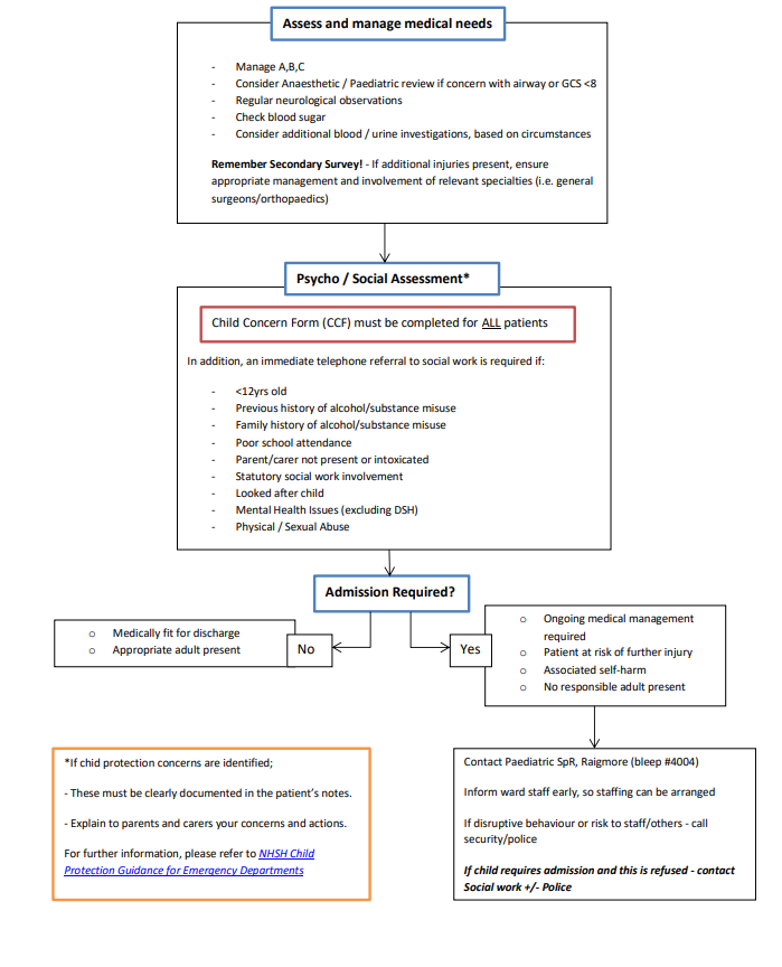 Guideline to ensure consistent and safe management of vulnerable young people presenting to emergency care settings under the influence of alcohol/drugs. Ensuring psyhosocial risks are identified and appropriately acted on.