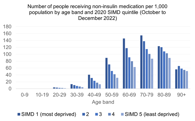Prevalence of diabetes in Scotland (age and deprivation comparison)