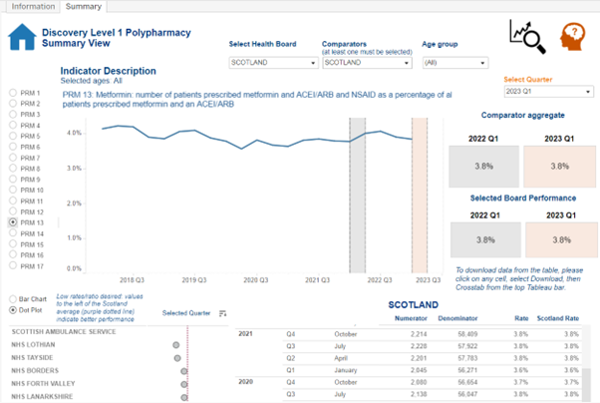 • There is a prescribing dashboard with measures including: polypharmacy, primary and secondary care expenditure and secondary care use of medicines (HMUD)